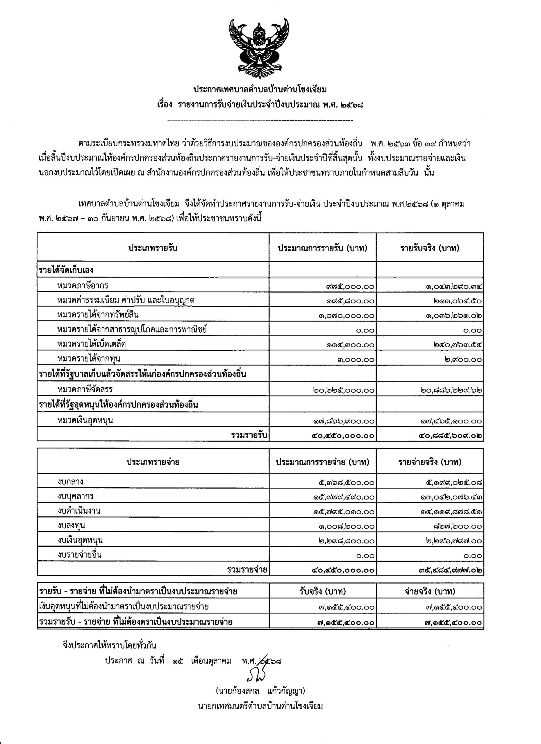 ประกาศรายงานการรับจ่ายเงินประจำปีงบประมาณ พ.ศ.2568________(16/10/2568)